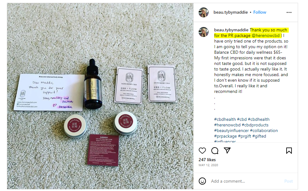 You can sponsor videos, podcasts, and individuals too. For example, apparel businesses sponsor outfits (and send PR packages) of celebrities and influencers and ask them to post about it on their social account: